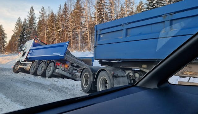 Lastbilsekipage av vägen i Umeå