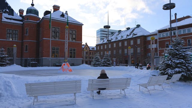 Tidigare vintrar har det funnits en snöborg eller en snölabyrint på Rådhustorget. Den här vintern har Umeå kommun i stället gjort i ordning en skridskobana...
