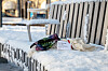 Handstickade och virkade halsdukar, mössor och vantar placerades i busskurer och på andra offentliga platser...