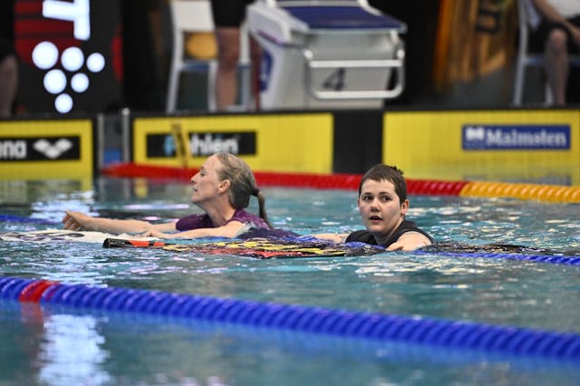 Det inträffade en klimatdemonstration i Eriksdalsbadet i Stockholm under lördagskvällens finalpass i Swim Open...