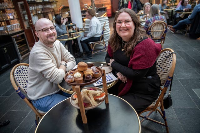 Doften av nygräddade scones blandas med aromerna från svart, grönt och rött te...